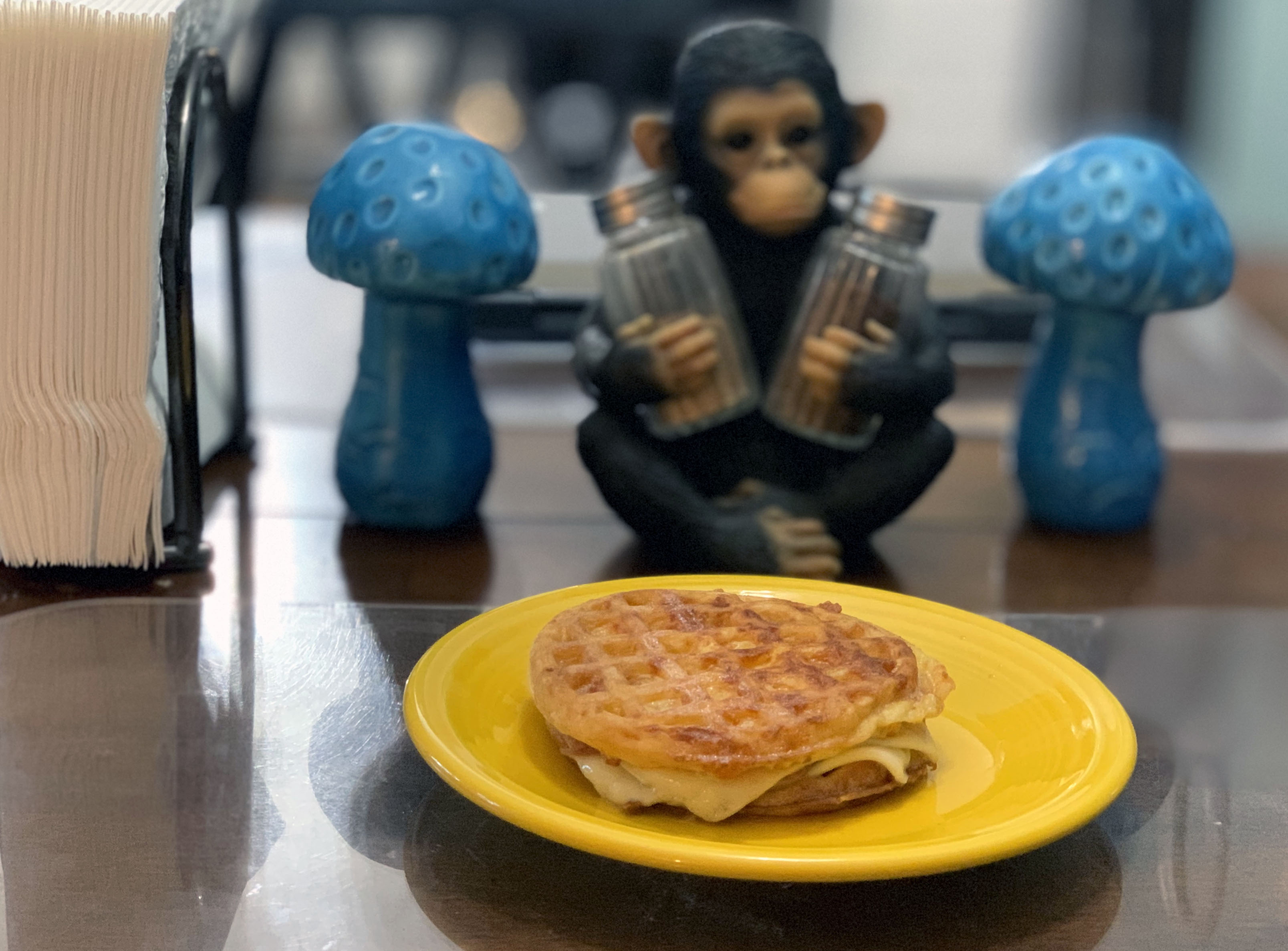 What’s a Chaffle? It’s the new craze sweeping the keto community and all the hep cats are doing the Chaffle! You’ll need a mini waffle iron (I got a 4″ waffle iron on Amazon for ~$10), and a sense of desire for a damn good grilled cheese! I’ll do this in two parts, first the Chaffle, then the grilled cheese.